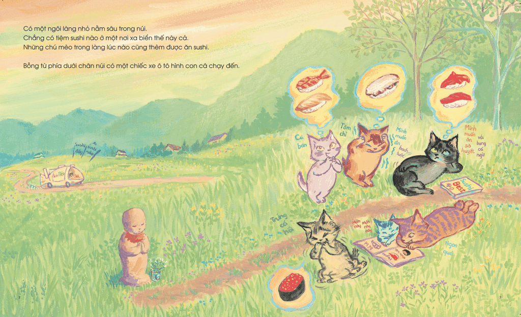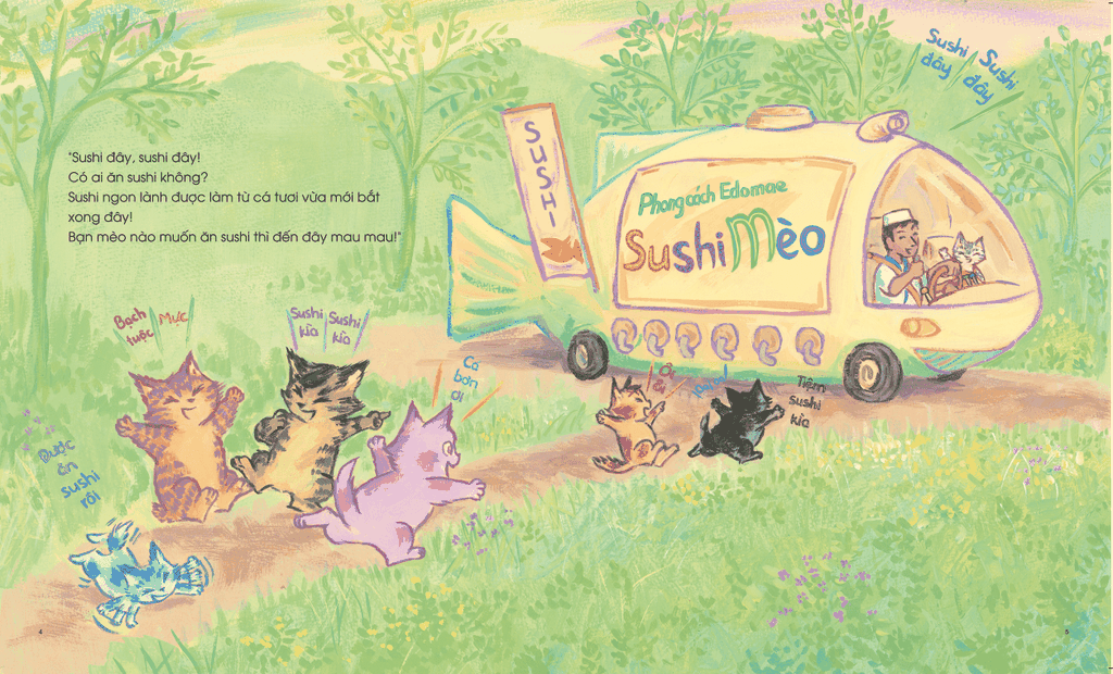 Tiệm Sushi Mèo là một câu chuyện Ehon Nhật Bản sinh động và thú vị dành cho bé 3–6 tuổi, kể về những chú mèo sống ở một vùng quê xa biển luôn ao ước được nếm đủ các loại sushi ngon lành mà chỉ nghe kể thôi đã làm chúng mê mẩn.