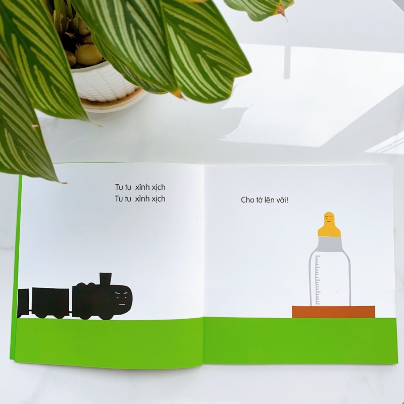 Các cụm từ tượng thanh lặp đi lặp lại khiến bé thích thú và dễ dàng ghi nhớ. Ngoài ra sự kết hợp của những màu sắc bắt mắt như trắng, đỏ, vàng, xanh lá cây hay những thay đổi tinh tế trong từng biểu cảm của đoàn tàu mỗi khi chở thêm hành khách cũng góp phần kích thích khả năng quan sát của trẻ. Đoàn tàu sẽ đưa các bạn nhỏ đi đến đâu nhỉ?
